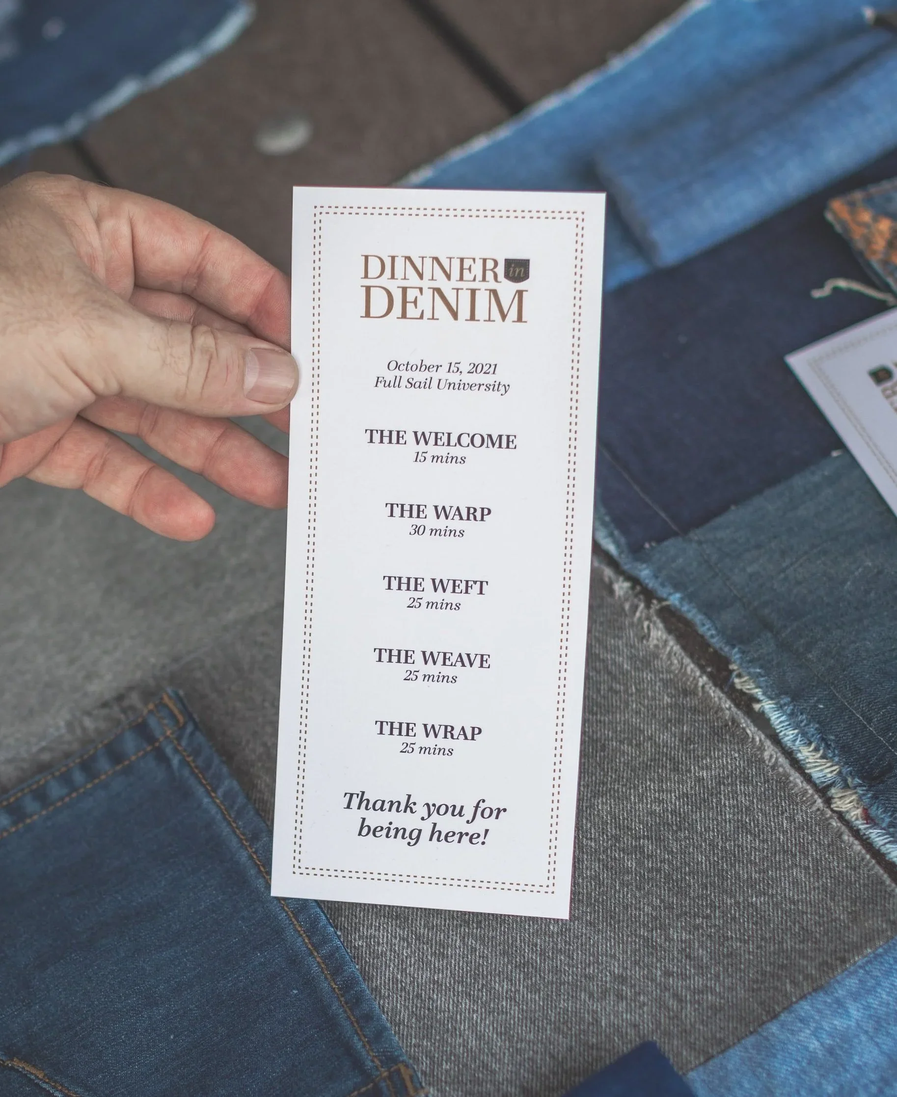 Dinner in Denim was an intentional gathering held at Full Sail University in the fall of 2021. The purpose was to foster connection and spark conversation among inspiring individuals from across the organization.